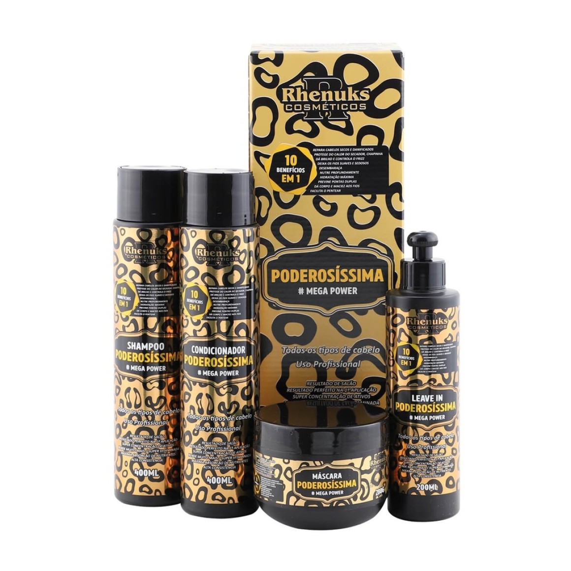 O Kit Poderosíssima Mega Power traz 10 benefícios em um só produto. Repara cabelos secos e danificados, protege do calor do secador e da chapinha, dá brilho e controla o frizz, deixando os fios suaves e sedosos.