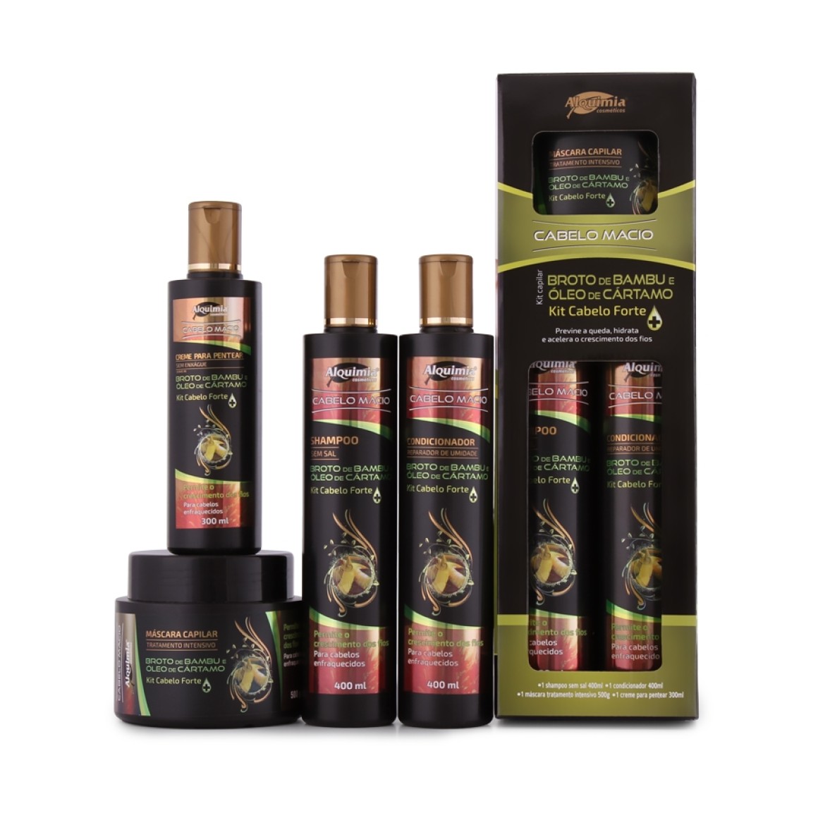 O Kit Capilar Cabelo Forete Broto de Bambu e Óleo de Cártamo da linha Cabelo Macio foi desenvolvido para a rescontrução de cabelos enfraquecidos. Fortalece os fios que passaram por processo de queda, estimulando o crescimento saudável.