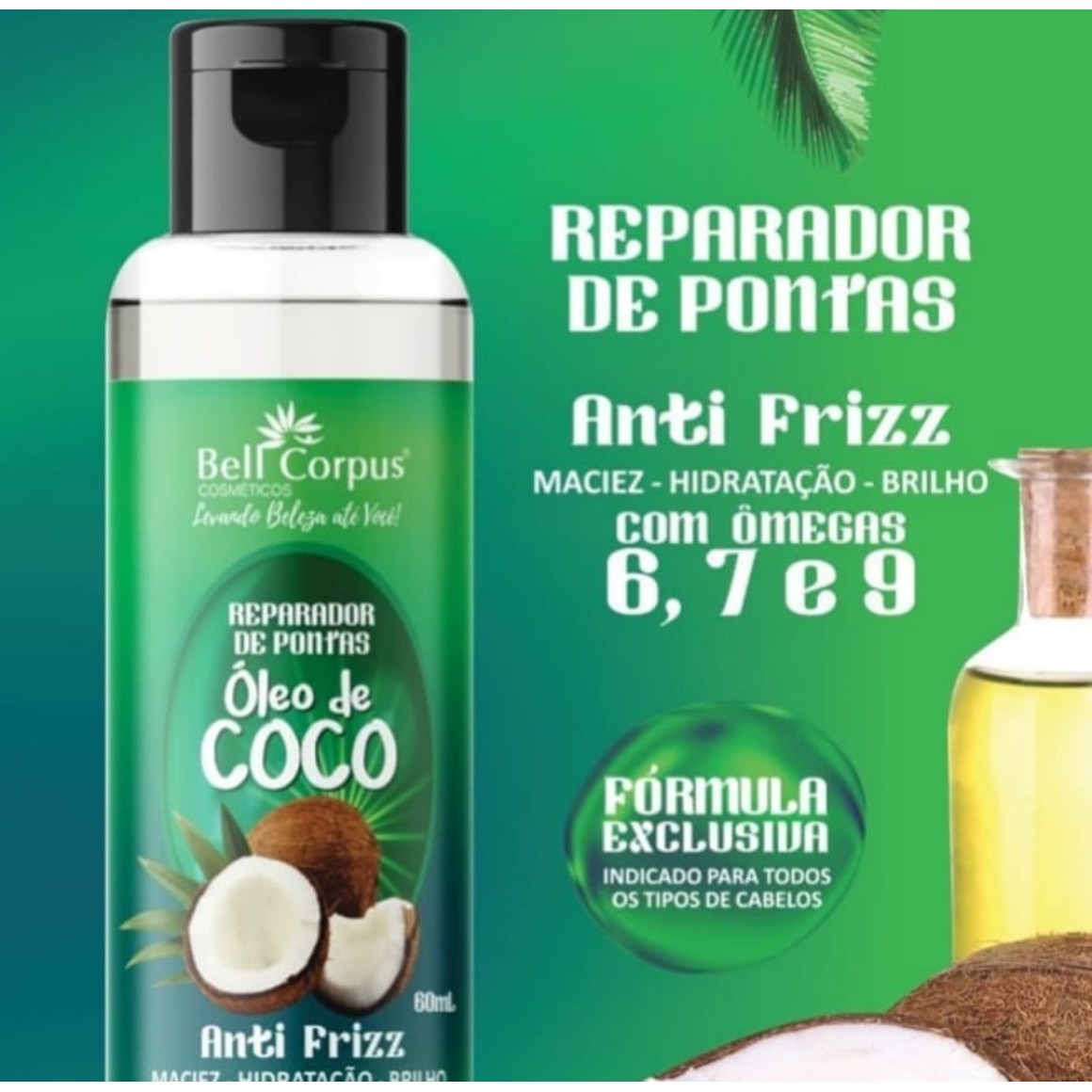O Reparador de pontas Óleo de coco Bell Corpus Cósmeticos foi formulado para deixar seus cabelos livres de frizz e pontas duplas. possui uma combinação de Ômegas 6,7, e 9 que nutrem e fortalecem os fios. promove brilho e suavidade deixando os cabelos com aspecto saudável. não deixa o aspecto oleoso indesejado.