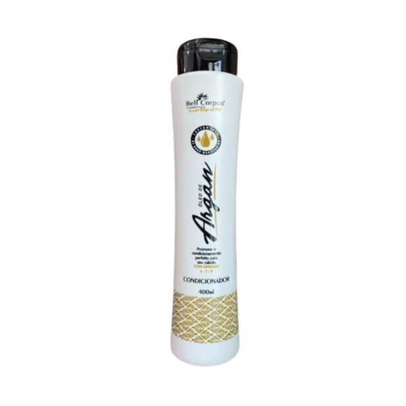 O condicionador Óleo de Argan Bell Corpus, é enriquecido com Ômegas 3 - 6 - 7 e 9, e o poderoso Óleo de Argan Marroquino que repõem nutrientes essenciais para a nutrição, hidratação e reposição da fibra capilar, promovendo brilho intenso e devolvendo a saúde capilar.