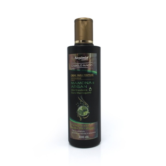 Cabelos lindos, soltos e sem frizz. Estes são alguns dos benefícios do Creme de Pentear Cabelo Macio Mamona e Argan Alquimia Cosméticos. Como é sem enxágue, facilita o desembaraço dos fios, deixando-os hidratados e com brilho o dia todo. 300 ml