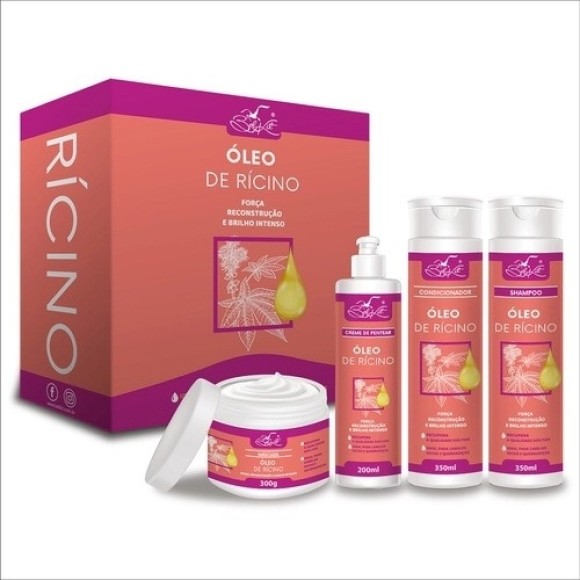 A linha Óleo de Rícino, promove a reconstrução dos fios, força e brilho intenso. Também garante um couro cabeludo saudável, restaurando seus fios da raiz as pontas.