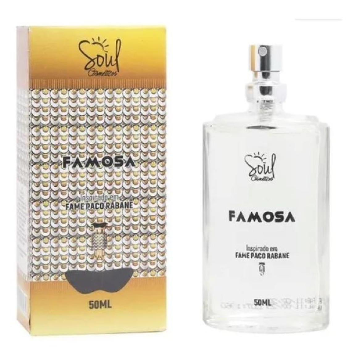 O Perfume Famosa 50 ml da Soul Cosméticos é uma opção sofisticada para quem busca uma fragrância inspirada em um dos grandes clássicos da perfumaria, Fame Paco Rabanne. Experimente essa essência envolvente e deixe sua marca por onde passar, envolvendo-se com a aura de luxo e feminilidade do Perfume Famosa da Soul Cosméticos.