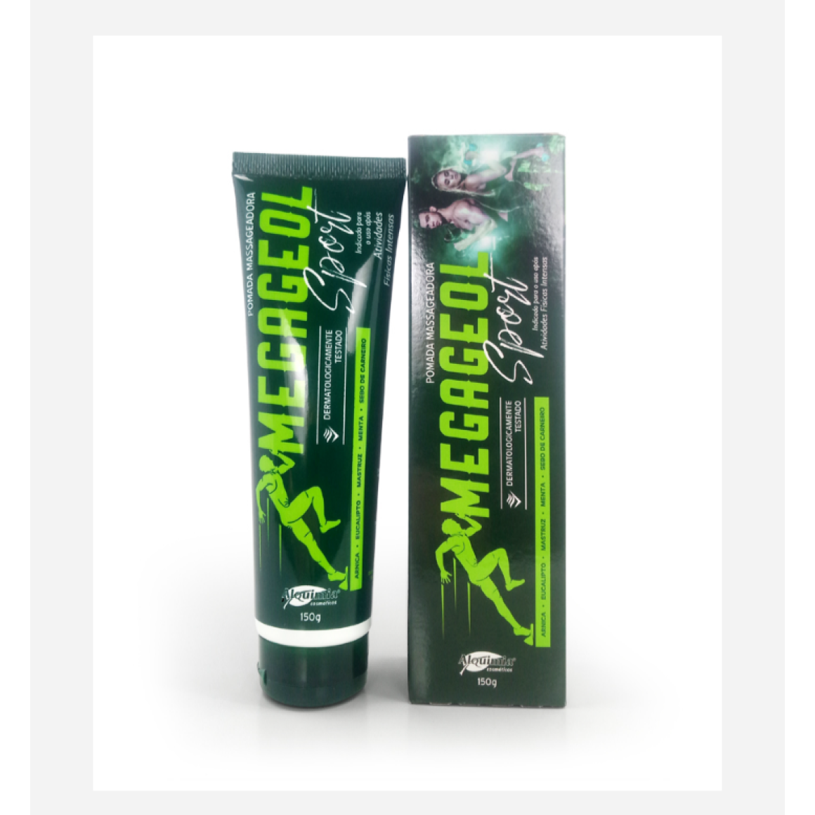 MODO DE USAR: Com a pele limpa, aplique a quantidade desejada da Pomada Massageadora Megageol Sport Alquimia Cosméticos e massageie bem até completa absorção.